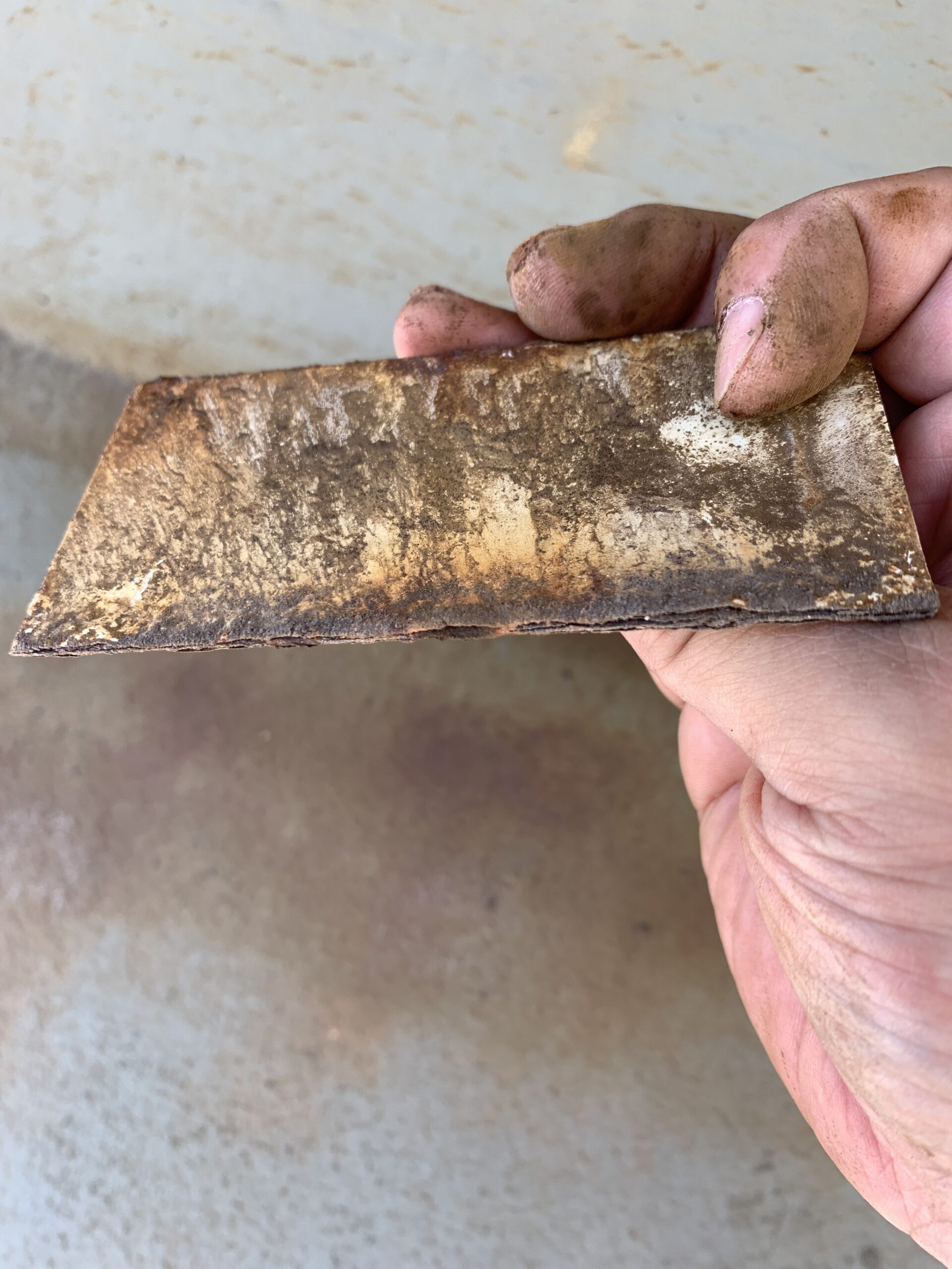その15か月後2022年6月に確認したサンプル(フッ素塗料)では下記画像のように目視でも劣化が確認できるレベルに達しました。
