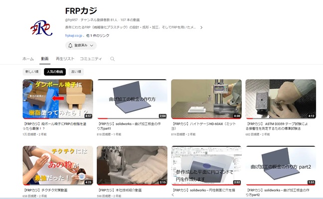 1万回視聴御礼「段ボール椅子にFRPの樹脂を塗ったら最強!?」動画 2024 2/01 お知らせ 2024年2月1日 当社You Tubeチャンネル「段ボール椅子にFRPの樹脂を塗ったら最強!?」動画が先日1万回視聴突破しました。 今後も皆様に御覧いただける動画を配信させていただきます。 こちらの動画もよく御覧いただいています。 「チクチク対策動画」 お知らせ #frp #YouTube #技術相談 #設計 よかったらシェアしてね! URLをコピーしました! URLをコピーしました! R&Dセンター ビジョン You Tubeチャンネル solidworks-曲げ加工板金の作り方part1 この記事を書いた人 FRPkaji.R&Dcenter 関連記事 R&DセンターWEBサイト リニューアル 2026年3月31日 材料試験・受託試験の前に必須「評価計画(計画書)」ページを公開しました 2026年2月21日 FRP劣化診断のご相談について(お問い合わせフォーム/お電話の受付案内) 2026年2月12日 R&Dセンター 2026年の目標 2026年1月1日 FRPカジ公式YouTubeでショート動画配信スタート! 2025年12月16日 【新連載】若手が学ぶ!FRPカジの技術レポート徹底解説(11月スタート) 2025年10月31日 微細ガラス繊維に要注意、身近な“FRP”でも安全第一 2025年9月29日 FRPリサイクル事業についてかながわ経済新聞にて掲載 2025年8月15日