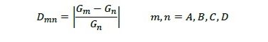 Gm、Gnはそれぞれ水準 m、nの表面粗さ、水準Dmn は水準mとn間の表面粗さの変化率の絶対値、A~DはFRP surface gloss の末尾のアルファベットを意味する。